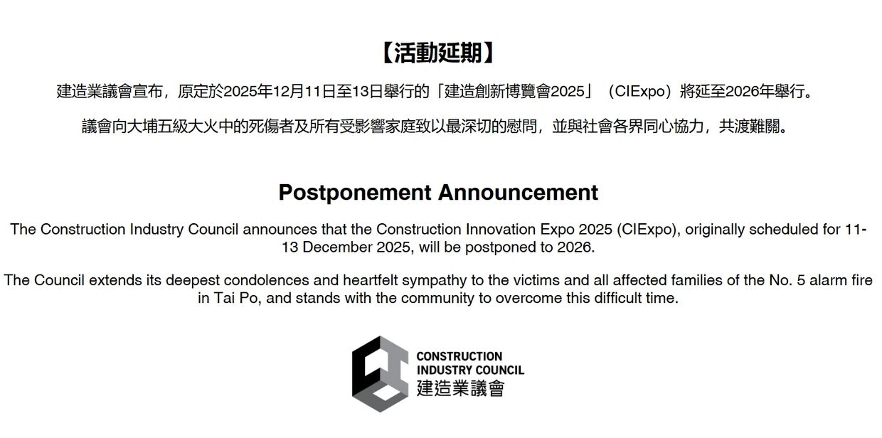 The triennial flagship event of the Construction Industry Council (CIC), “Construction Innovation Expo 2025” (CIExpo), will take place from December 11 to 13 2025 at the Hong Kong Convention and Exhibition Centre.